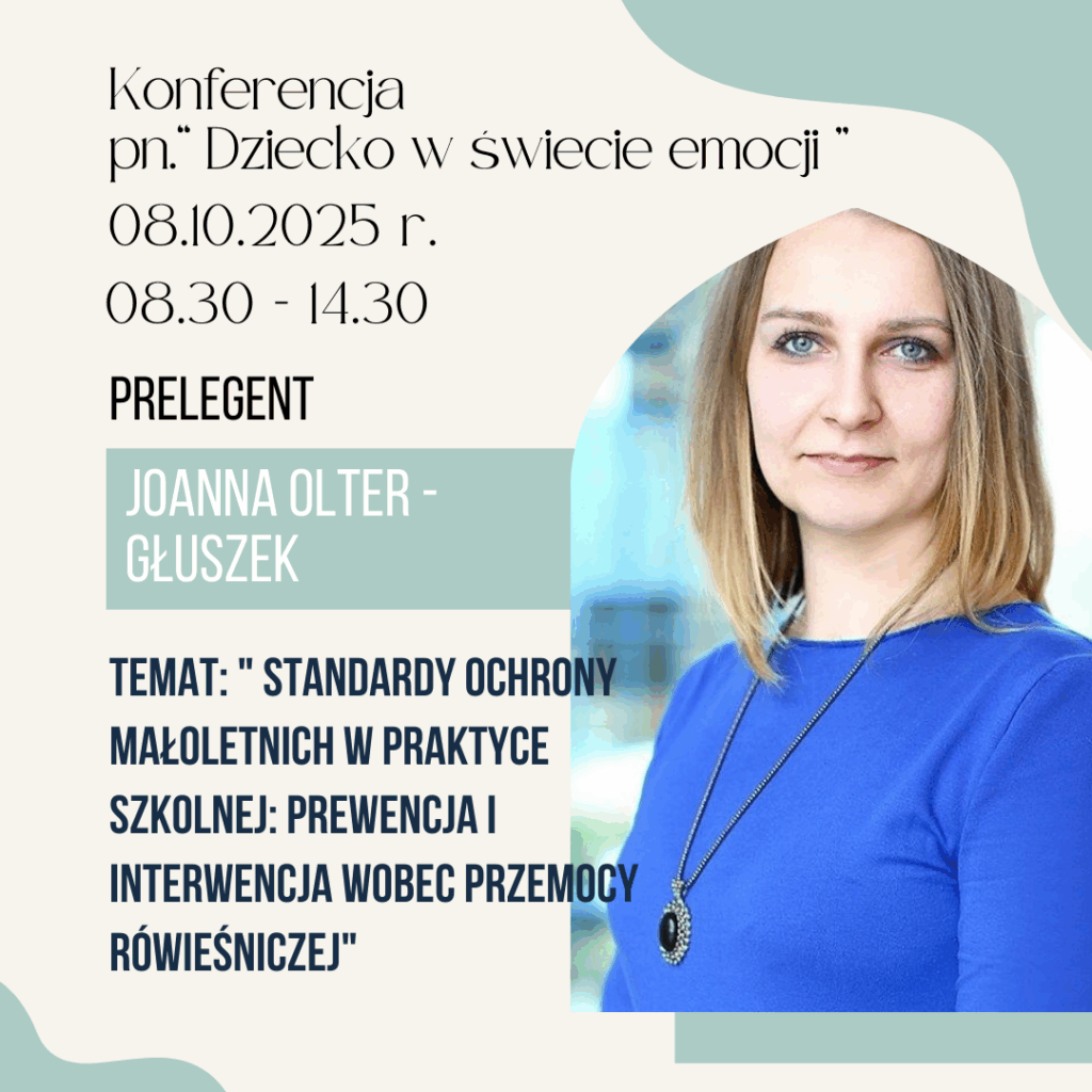 Joanna Olter – Głuszek – temat: “Standardy Ochrony Małoletnich w praktyce szkolnej: prewencja i interwencja wobec przemocy rówieśniczej”