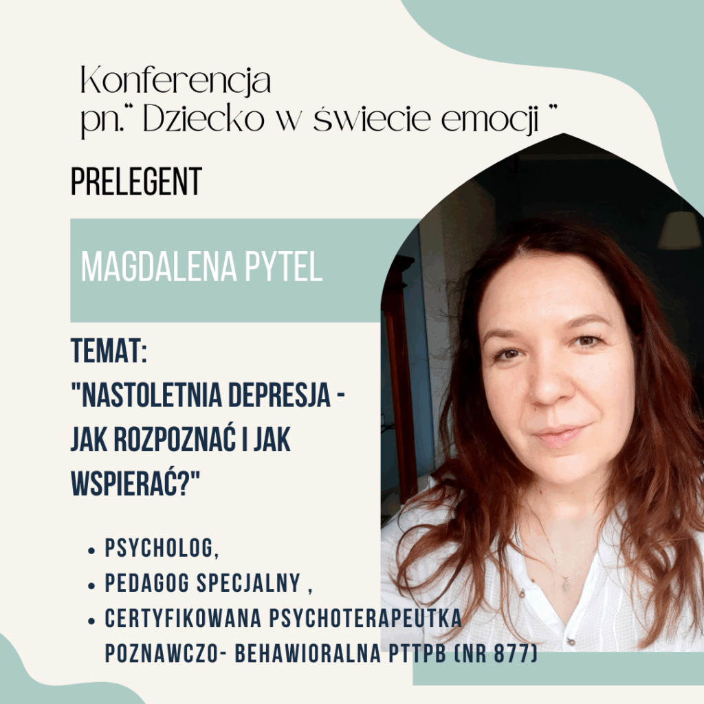 Magdalena Pytel – temat: “Nastoletnia depresja – jak rozpoznać i jak wspierać ?”