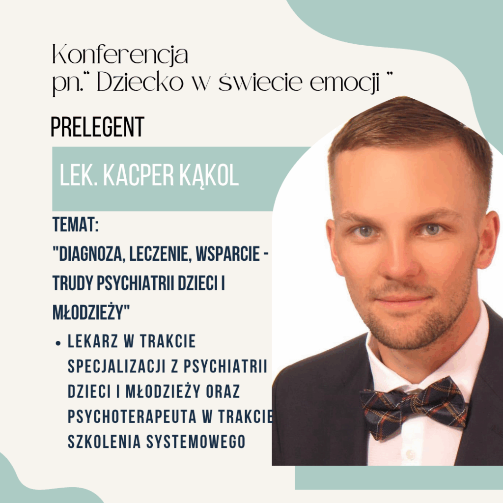 Lek. Kacper Kąkol – temat: “Diagnoza, leczenie, wsparcie – trudy psychiatrii dzieci i młodzieży”.