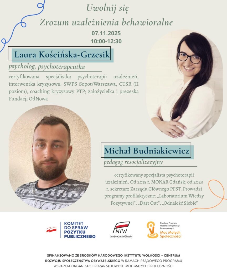 Warsztaty „Uwolnij się – zrozum uzależnienia behawioralne” zostały stworzone z myślą o osobach, które chcą lepiej rozumieć mechanizmy stojące za nawykami i zachowaniami prowadzącymi do uzależnień niemających związku z substancjami – takich jak nadużywanie telefonu, internetu, gier komputerowych, pracy, zakupów czy jedzenia.